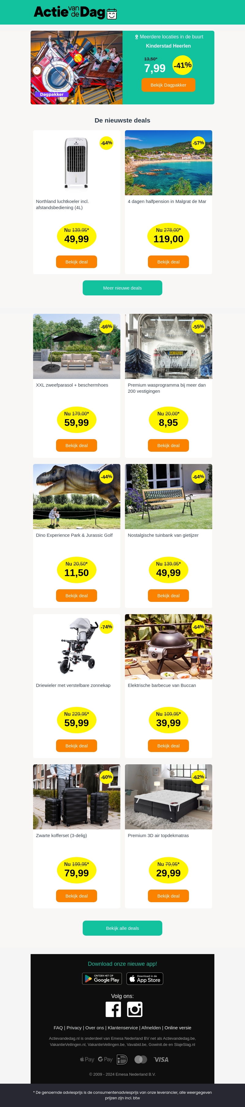 Kinderstad Heerlen biedt nu een geweldige korting van 41% op entreetickets. Profiteer van deze speciale aanbieding en beleef een dag vol plezier. Bekijk ook de nieuwste deals zoals een luchtkoeler, een 4-daags verblijf in Malgrat de Mar, en een Dino Experience Park. Mis het niet en geniet van fantastische kortingen!