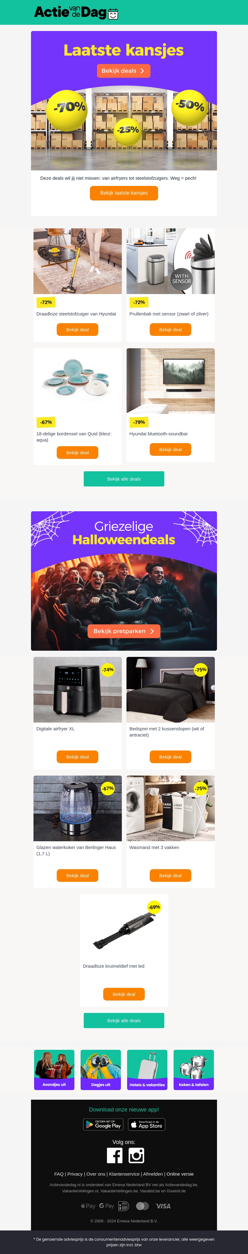 Grijp je kans met kortingen tot 79% op een breed scala aan producten. Van huishoudelijke artikelen tot elektronica en meer. Mis deze laatste kansjes vanaf slechts €9,99. Ontdek de beste aanbiedingen die zeker snel weg zullen zijn. Bezoek ons nu en sla je slag. Wacht niet te lang, want op is op!