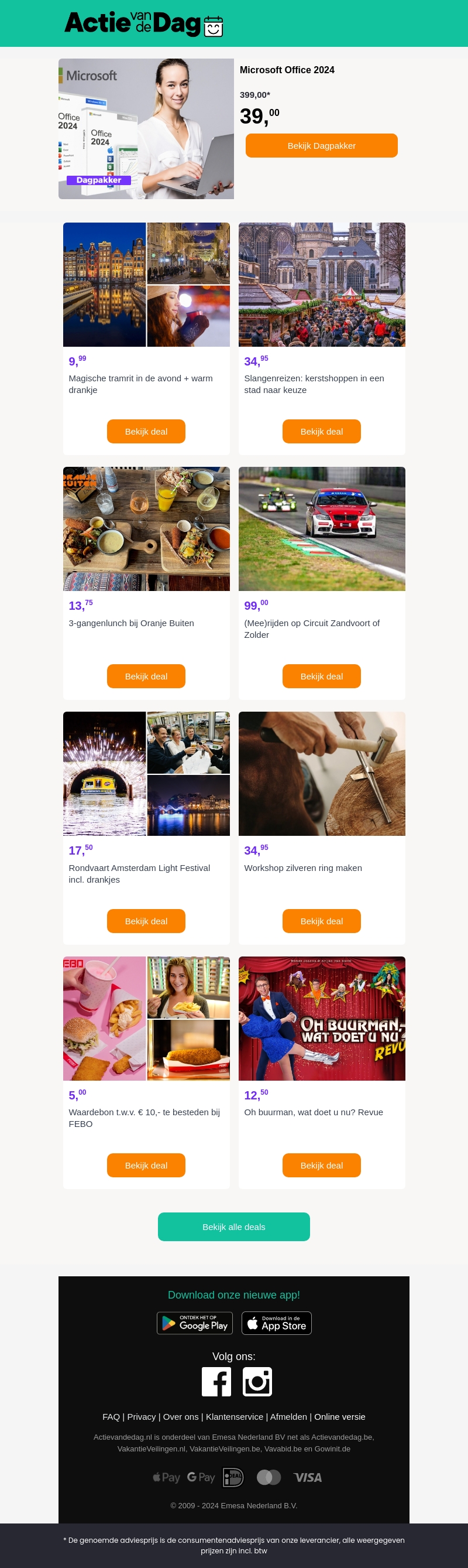 Haal Microsoft Office 2024 nu in huis voor een ongelooflijke prijs van slechts €39. Geniet ook van andere spannende aanbiedingen zoals magische trams in de avond en unieke workshops. Deze nieuwsbrief brengt je de nieuwste en beste deals van Actie van de Dag.