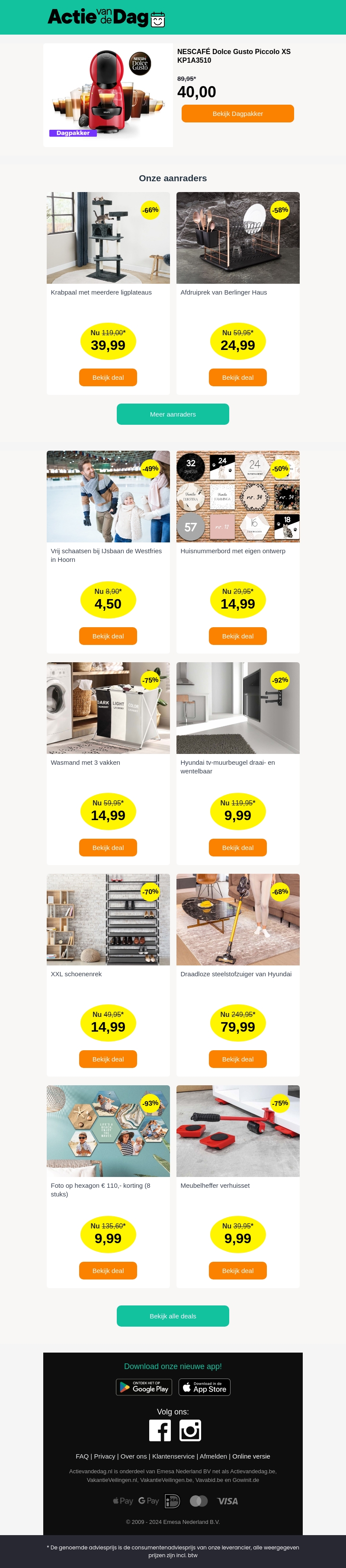 Ervaar pure koffiegenot met de NESCAFÉ Dolce Gusto Piccolo XS KP1A3510 voor slechts €40. Deze compacte koffiemachine past perfect in elke keuken en biedt een breed scala aan koffiesoorten. Profiteer van de speciale dagaanbieding en andere geweldige deals op ons platform. Mis het niet!
