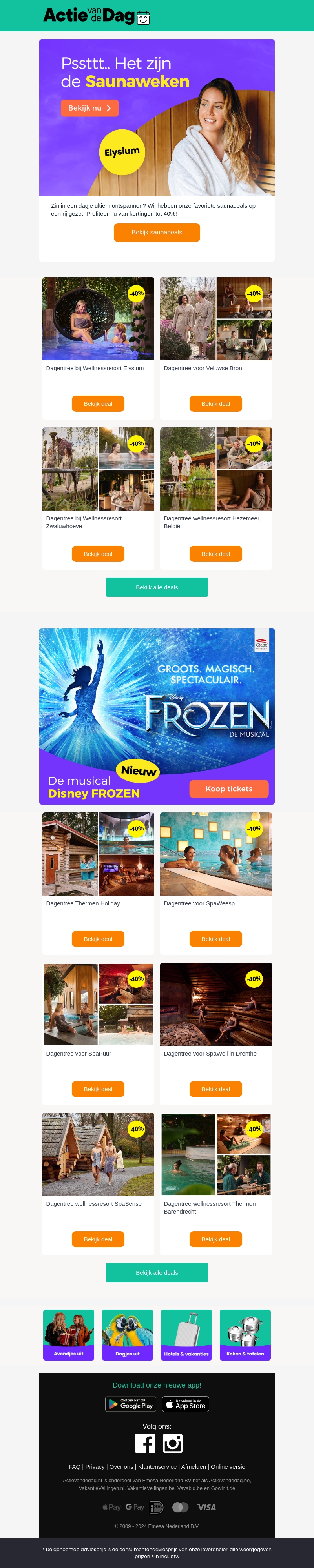 Duik in de wereld van ultieme ontspanning met onze uitzonderlijke sauna-aanbiedingen. Bezoek topresorts zoals Elysium, Veluwse Bron, en Zwaluwhoeve, en geniet van kortingen tot 40%. Ontdek meer wellnessdeals en trakteer jezelf op een dag vol serene rust en ontspanning. Mis de kans niet om jezelf te verwennen.