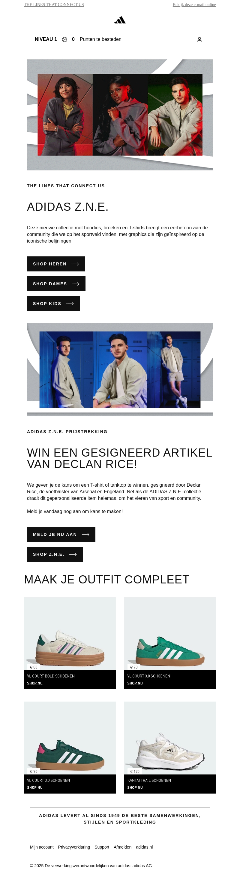 De nieuwste ADIDAS Z.N.E.-collectie is nu verkrijgbaar, met stijlvolle hoodies, broeken en T-shirts. Geïnspireerd door iconische lijnen en de sportcommunity, biedt deze collectie unieke grafische ontwerpen. Maak kans op een gesigneerd item van Declan Rice en voltooi je look met onze selectie schoenen.
