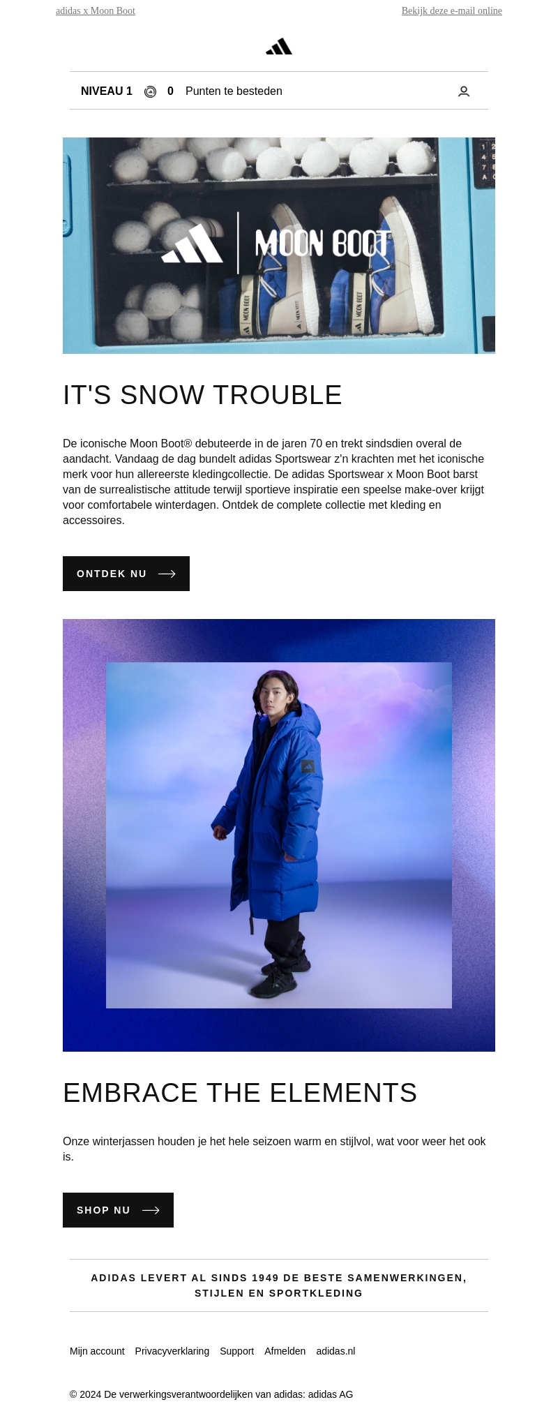 De iconische Moon Boot debuteerde in de jaren 70 en is terug met een samenwerking met Adidas Sportswear. Deze collectie biedt surrealistische en sportieve stijlen voor de koudere maanden. Ontdek nu de nieuwste kleding en accessoires en blijf warm deze winter.