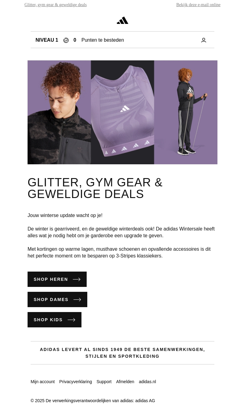 Geniet van enorme kortingen tijdens de Adidas wintersale. Vernieuw je garderobe met warme lagen, trendy schoenen en opvallende accessoires. Mis deze kans niet om te besparen op de iconische 3-Stripes.