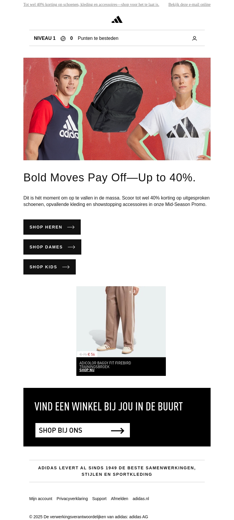 De Mid-Season Promo is begonnen met kortingen tot wel 40% op opvallende schoenen, kleding en accessoires. Het is hét moment om je stijl te vernieuwen en jezelf in de schijnwerpers te zetten. Koop voor heren, dames en kinderen. Mis deze geweldige kans niet om je garderobe bij te werken.