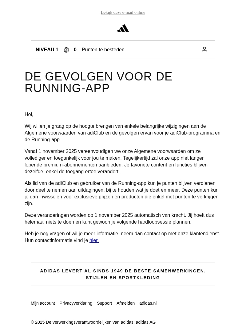Wijzigingen aan de Algemene voorwaarden van adiClub