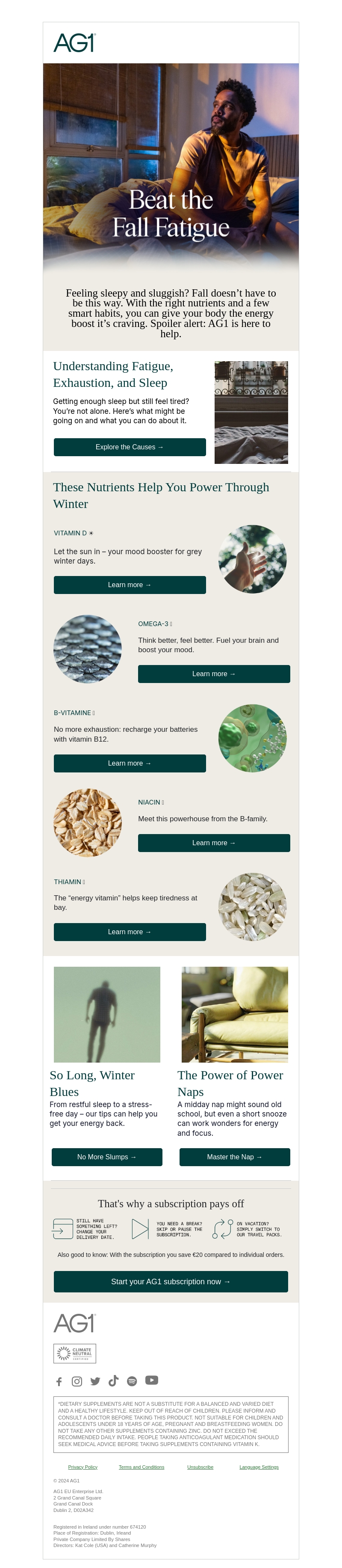 Voel je je slaperig en traag? De herfst hoeft niet zo te zijn. Met AG1 krijg je de juiste voedingsstoffen binnen. Vitaminen zoals D, Omega-3, en B12 geven je de energieboost die je nodig hebt. Start nu je AG1-abonnement en ervaar het verschil.