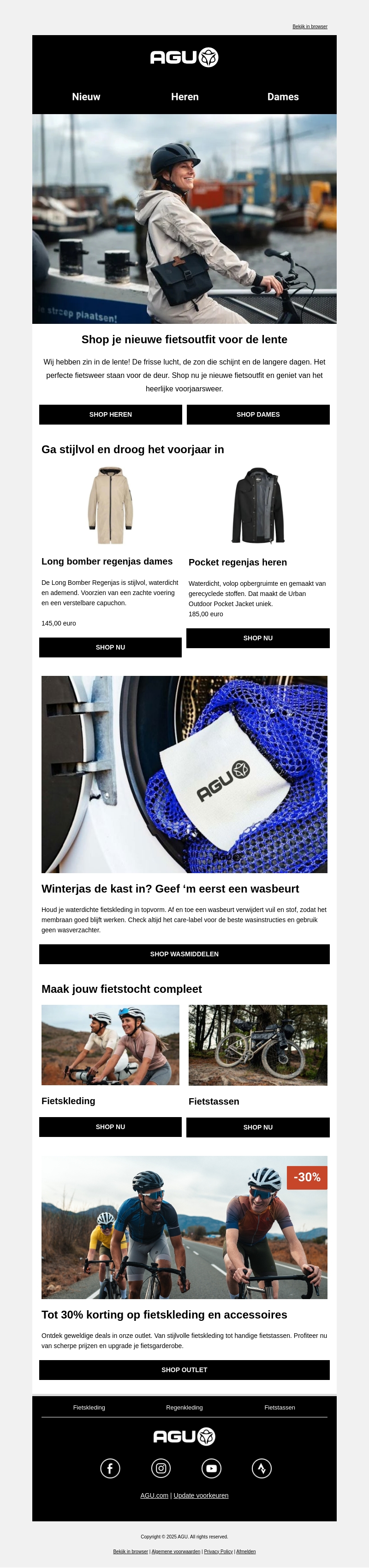 Ontdek de perfecte fietsoutfits voor dit voorjaar met een ruime selectie aan stijlvolle en functionele kleding. Van regenjassen tot fietskleding en -tassen, bereid je voor op het nieuwe seizoen. Profiteer van tot wel 30% korting in onze outlet. Zorg ervoor dat je kleding goed onderhouden blijft met onze wasmiddelen. Shop nu voor de scherpste prijzen en upgrade je fietsgarderobe.