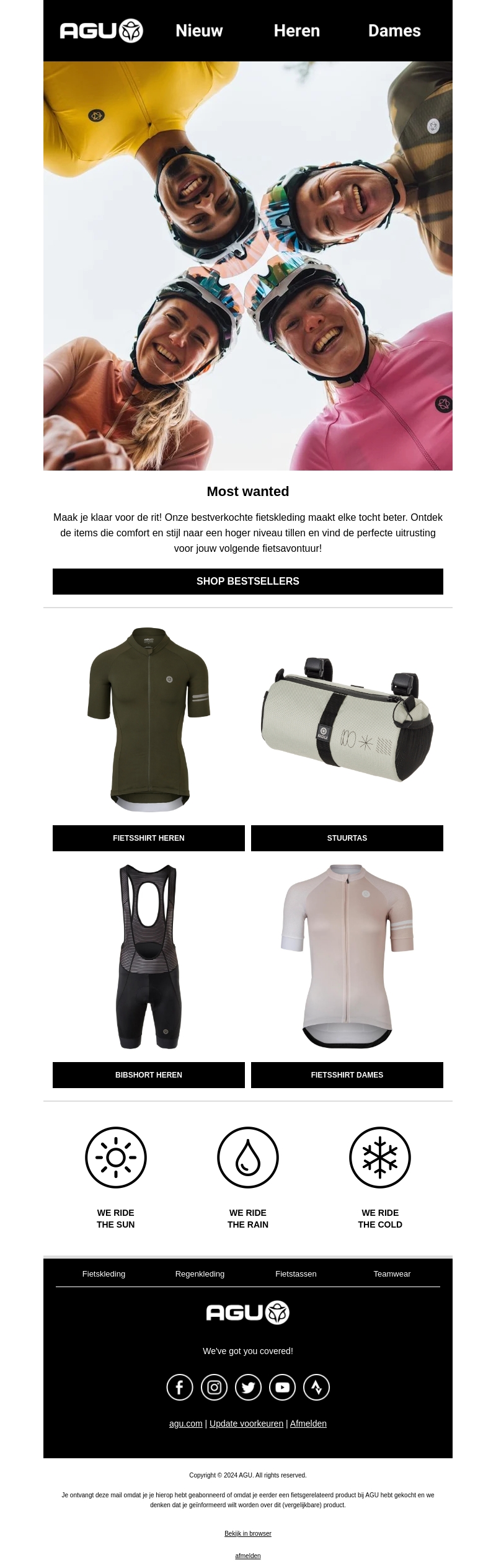 Maak je klaar voor de rit! Onze bestverkochte fietskleding maakt elke tocht beter. Ontdek de items die comfort en stijl naar een hoger niveau tillen en vind de perfecte uitrusting voor jouw volgende fietsavontuur. Shop nu de bestsellers bij AGU.
