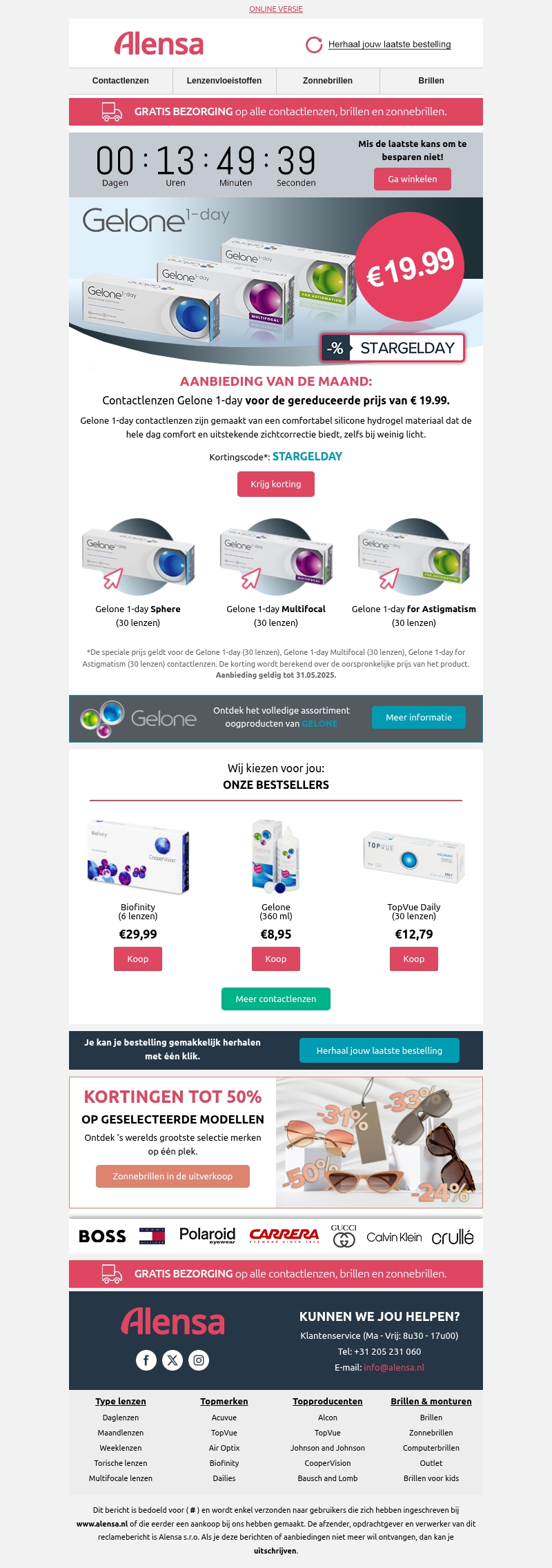 Alleen tot morgen: 50% korting op brillen of 10% korting op alle andere producten.