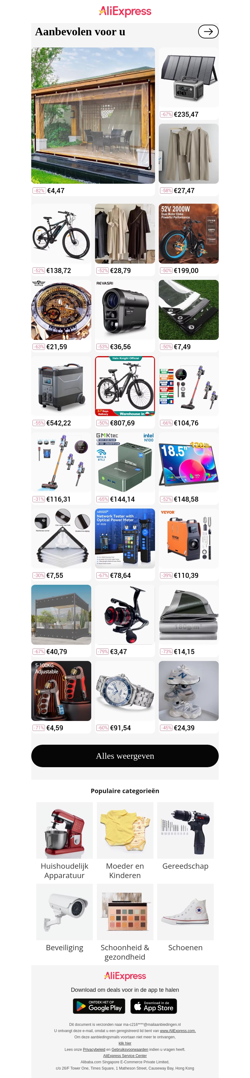 AliExpress biedt nu een reeks van nieuw binnengekomen, goed beoordeelde producten aan met aantrekkelijke kortingen. Van huishoudelijke apparaten tot sportartikelen, ontdek nu de beste deals. Mis de kans niet om te profiteren van deze aanbiedingen!