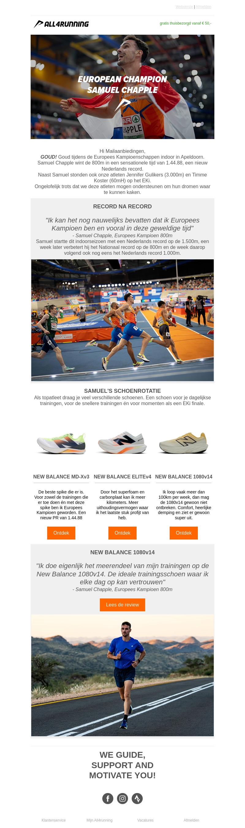Ontdek hoe Samuel Chapple zijn weg naar Europees goud vond tijdens de Kampioenschappen in Apeldoorn. Met zijn overwinning op de 800m en een nieuw Nederlands record, laat hij zien wat er mogelijk is met de juiste schoenen van All4Running. Lees verder voor de beste schoenaanbevelingen die je prestaties naar een hoger niveau tillen.