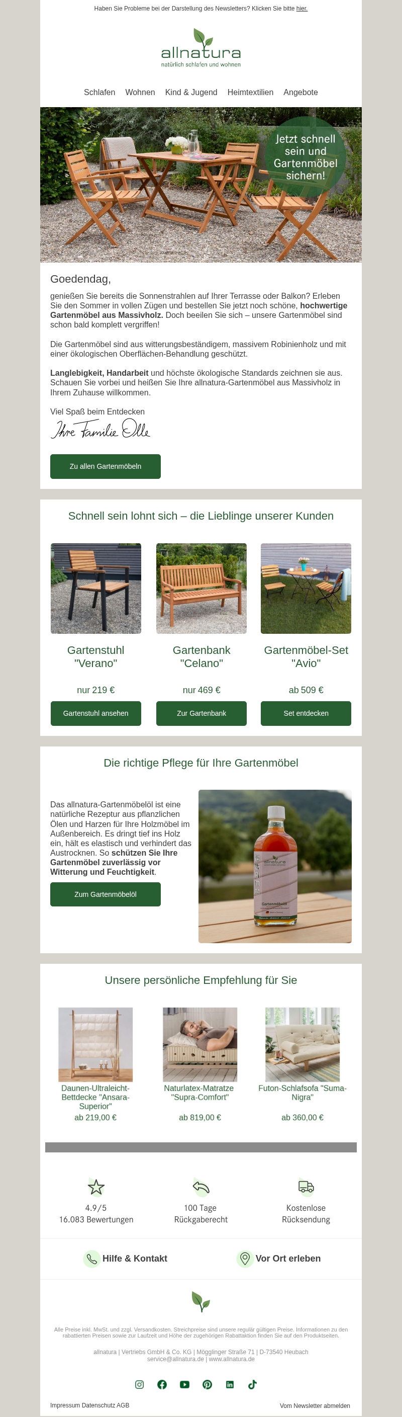Schnell sein: Die letzten Gartenmöbel von allnatura!