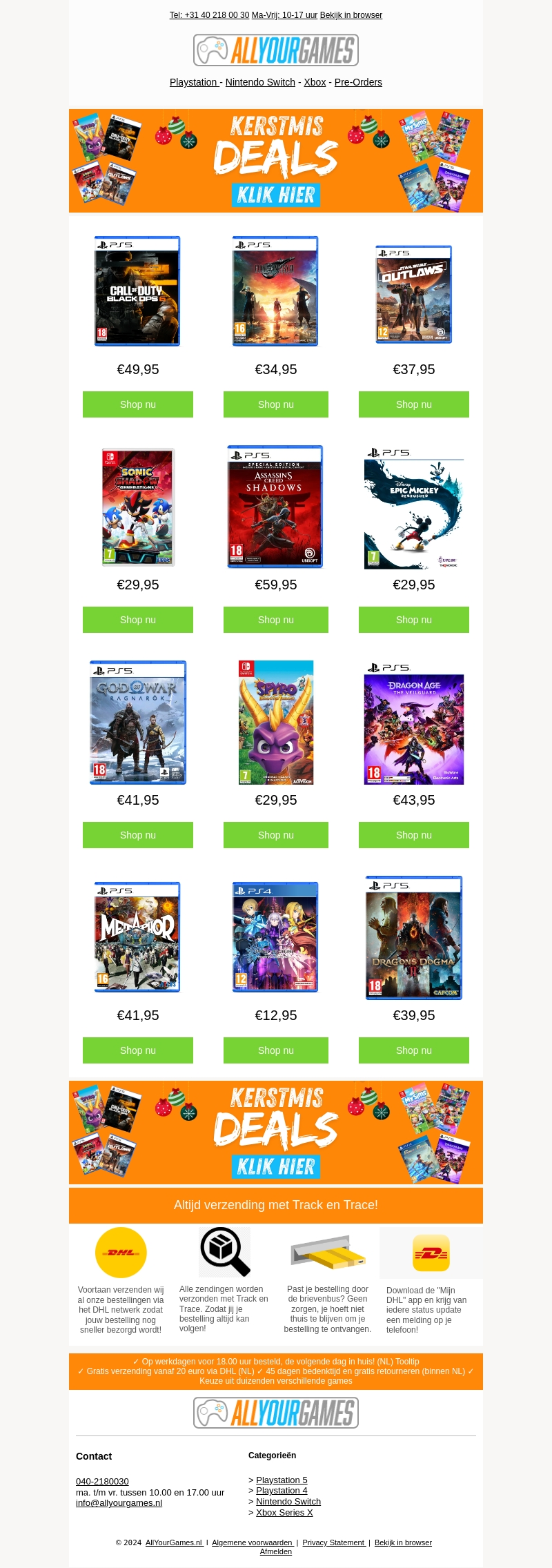 AllYourGames biedt tijdens de kerstperiode geweldige deals op populaire games voor PlayStation, Nintendo Switch en Xbox. Profiteer nu van kortingen en ontdek een breed aanbod aan spellen. Bestel je favoriete games eenvoudig en krijg ze snel thuisbezorgd. Mis deze kans niet om te besparen op topgames. Bezoek onze website voor meer informatie.