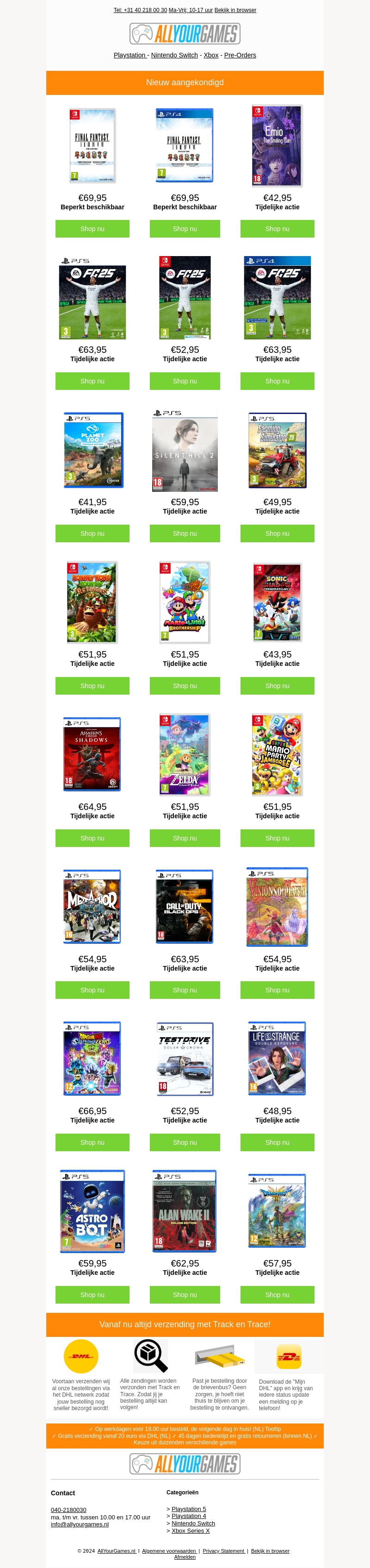 Bekijk de nieuwste aankondigingen en tijdelijke acties van populaire games bij Allyourgames. Profiteer van exclusieve kortingen en mis deze geweldige aanbiedingen niet. Beperkt beschikbaar, dus shop nu!