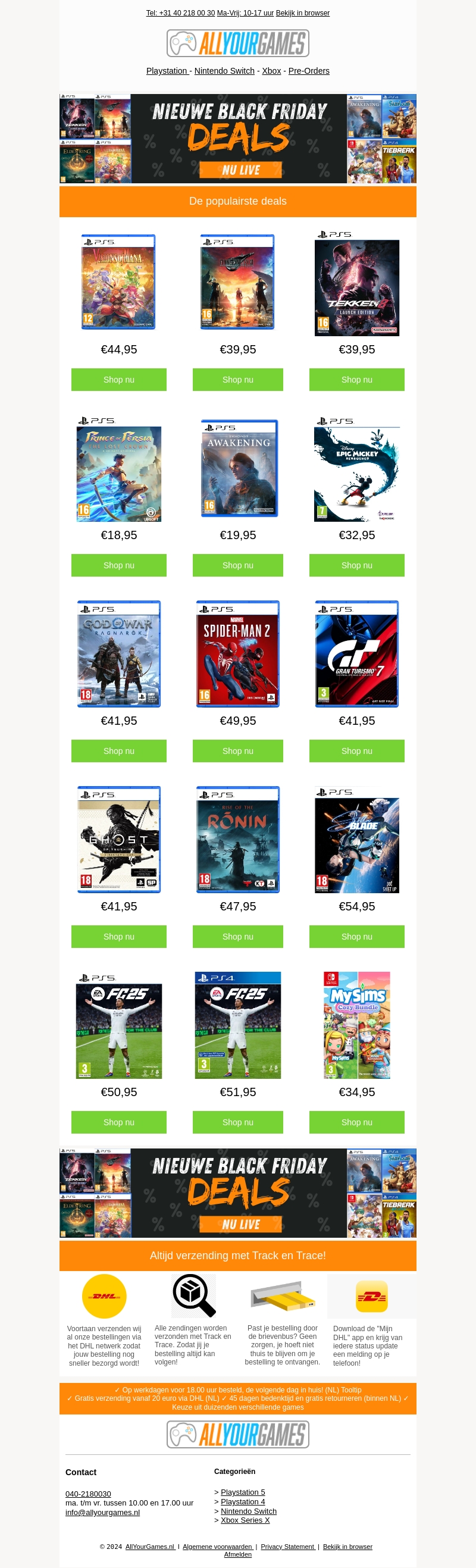 Beleef de sensatie van Black Friday met de nieuwste deals bij Allyourgames. Geniet van kortingen op populaire titels als Spider-Man 2, Tekken 8, en God of War Ragnarok. Zorg ervoor dat je deze kans niet mist om je gamecollectie uit te breiden. Profiteer nu van gratis verzending en volg je bestelling eenvoudig met Track & Trace.