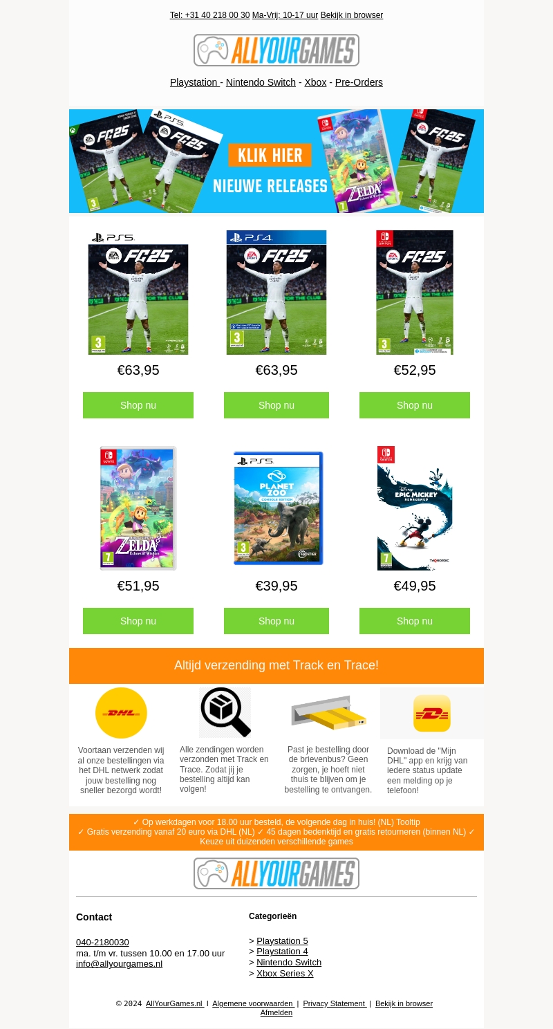 Ben je klaar voor de nieuwste games? FC 25 is nu beschikbaar voor PS5, PS4, en Nintendo Switch. Ontdek ook andere topgames zoals Zelda en Planet Zoo. Altijd snelle levering met Track en Trace via DHL.