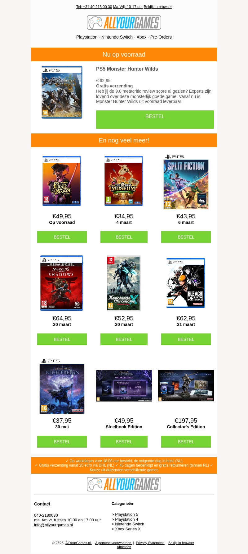 Monster Hunter Wilds is nu verkrijgbaar voor de PS5 voor slechts €62,95. Ervaar de actie met een gratis verzending! Haal direct de immens populaire game met een 9.0 metacritic score in huis. Mis deze kans niet om een van de best beoordeelde games zelf te spelen. Bekijk ook ons uitgebreide assortiment van andere spannende titels voor PS5.