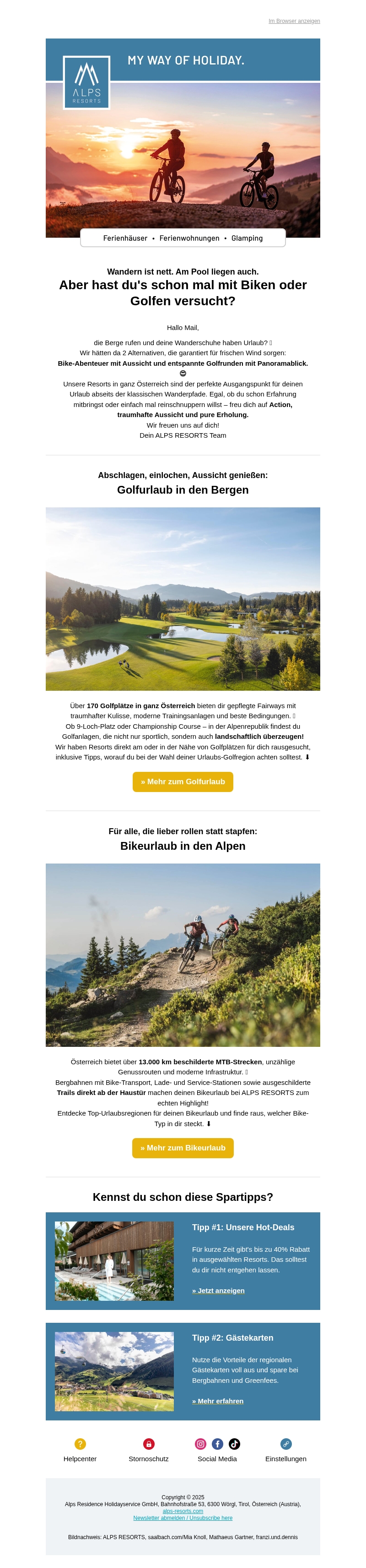 Mail, -20% auf neue Resorts in Tirol! 🎉