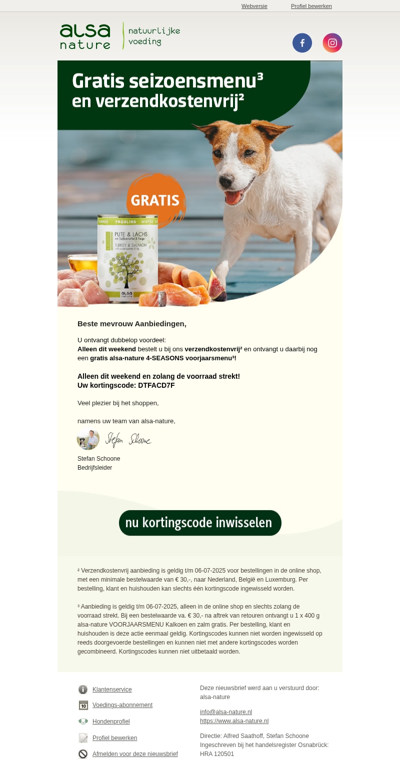 😃 Verzendkostenvrij weekend bij alsa-nature!