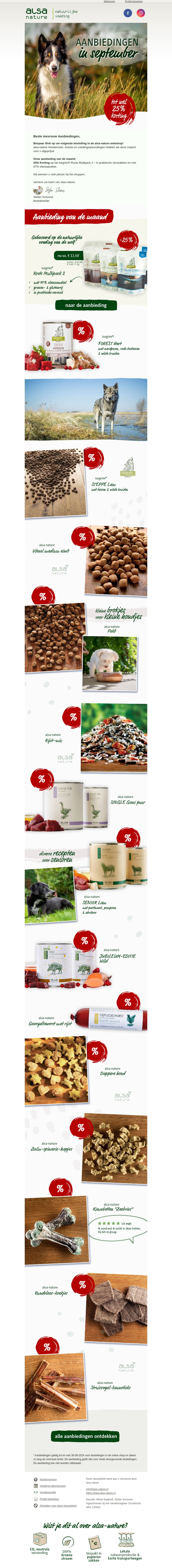 Deze maand kun je tot 25% besparen op hondenvoeding en snacks. Ontdek een breed assortiment aan natuurlijke en gezonde opties. Zorg goed voor je hond met deze onweerstaanbare aanbiedingen. Mis deze kans niet om te besparen!