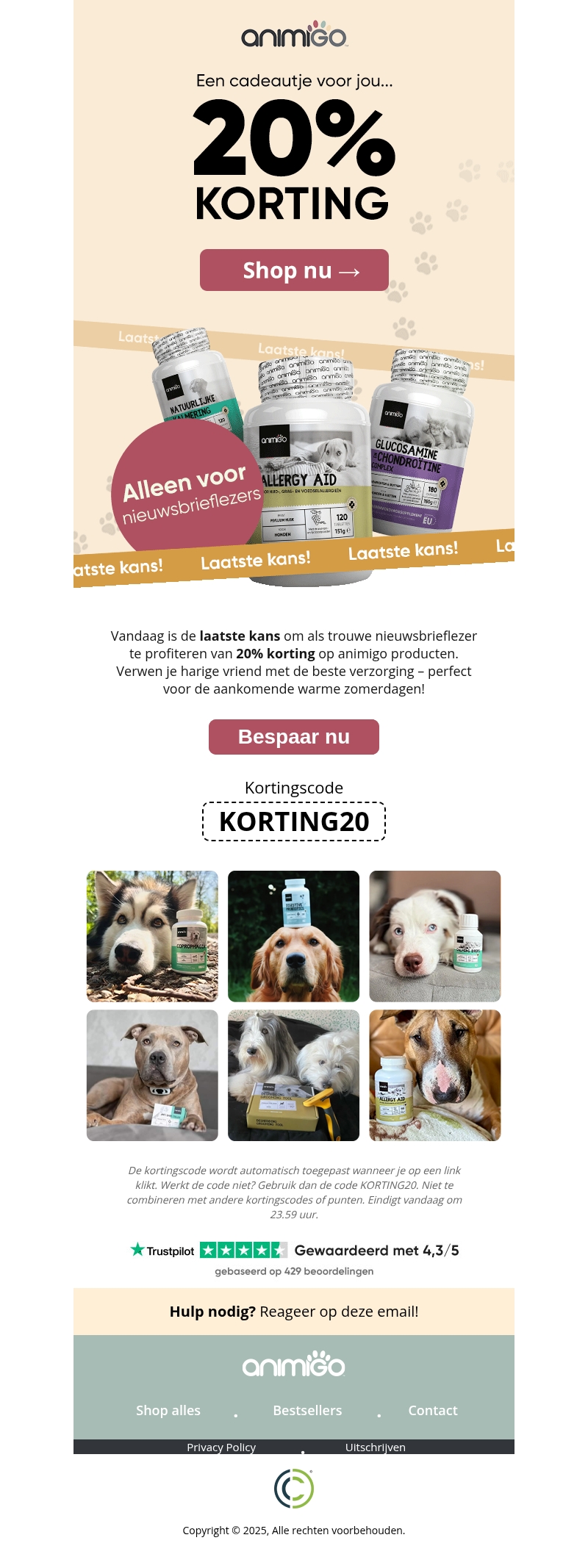 Laatste kans: 20% korting op producten voor je vriend πΆ