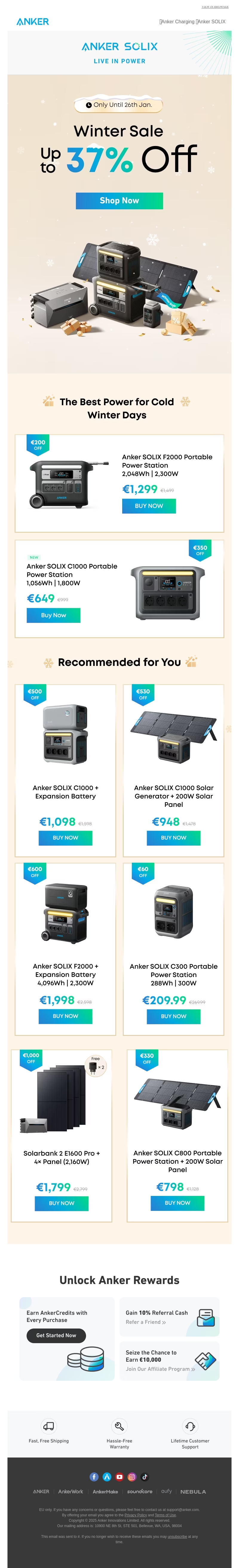 Geniet van geweldige winterkortingen bij Anker Solix! Met kortingen tot wel 37% op hoogwaardige power stations en zonnepanelen, is dit jouw kans om energiezuinige producten aan te schaffen. Ontdek aanbevolen poweroplossingen speciaal voor de koude maanden. Plus, verdien extra met AnkerCredits en ons referralprogramma.