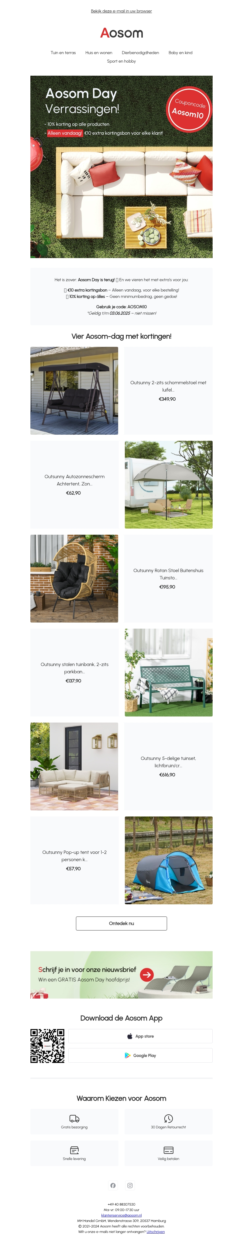 π Aosom Day Verrassingen β β¬10 Cadeau + 10% Korting voor Iedereen!