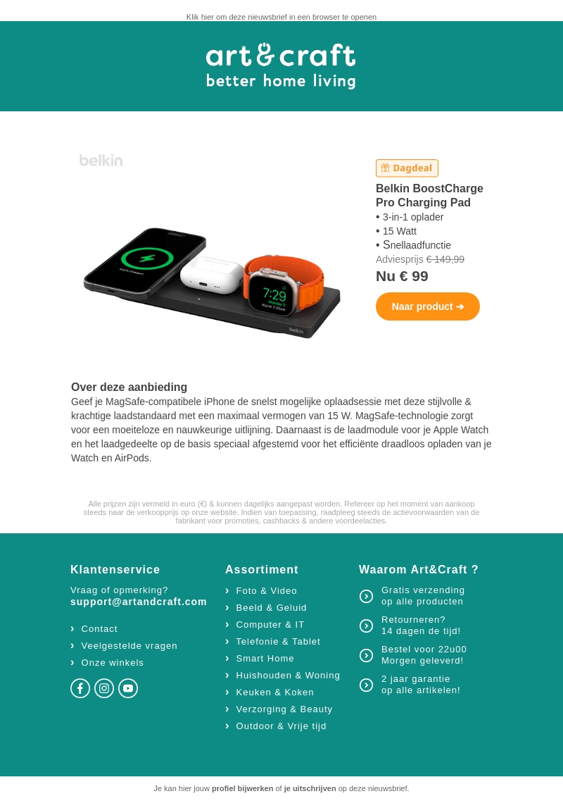 Profiteer van een geweldige dagdeal met de Belkin BoostCharge Pro 3-in-1 oplader. Deze oplader biedt een krachtige laadsnelheid van 15 watt, speciaal ontworpen voor je iPhone, Apple Watch en AirPods. Met MagSafe-technologie voor naadloze uitlijning, zorgt het voor een efficiënte draadloze oplaadervaring. Nu verkrijgbaar voor slechts €99 in plaats van €149,99!