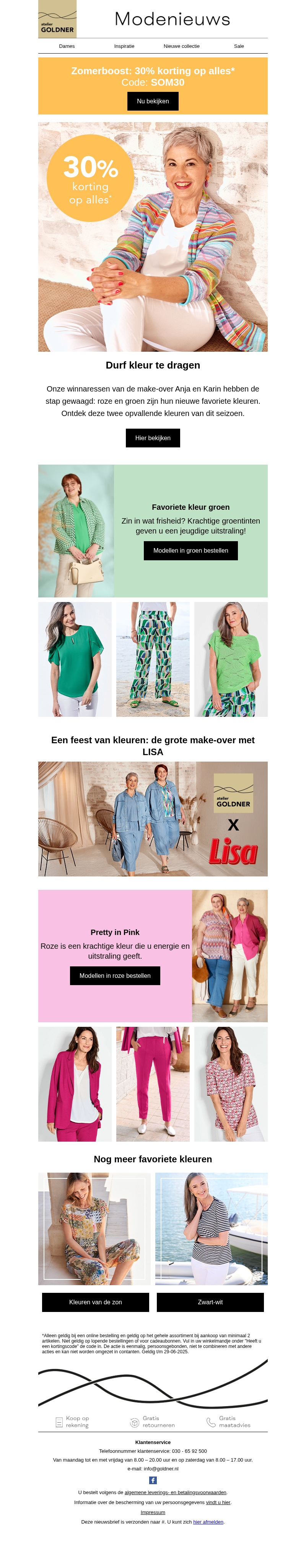 30% korting op alles! 🥳Ons motto voor de zomer: durf kleur te dragen