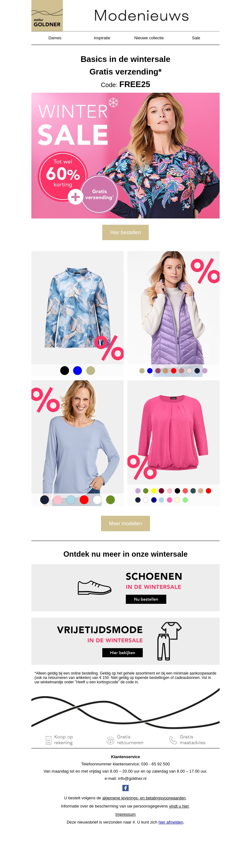 De grote wintersale is begonnen! Geniet van tot wel 60% korting op een geweldige selectie basics en ontvang gratis verzending op je bestelling, met de code FREE25. Ontdek modieus comfort en stijl voor elk wintermoment. Vergeet niet tijdig te bestellen om van deze onweerstaanbare aanbiedingen te profiteren.