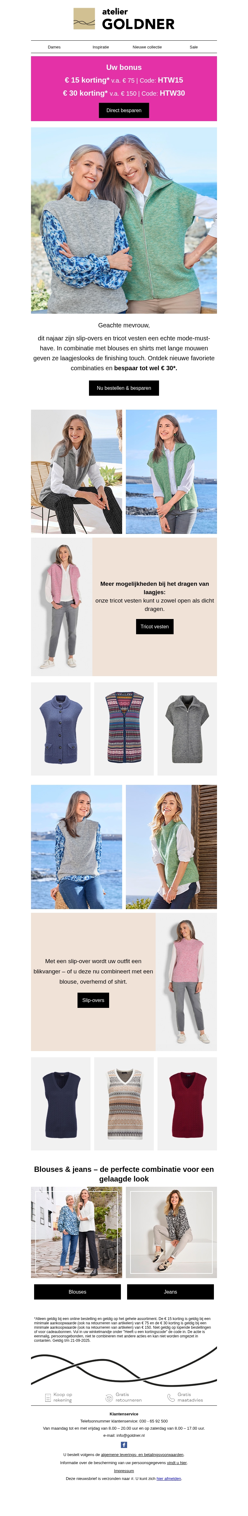 Bespaar tot wel € 30 op slip-overs en tricot vesten