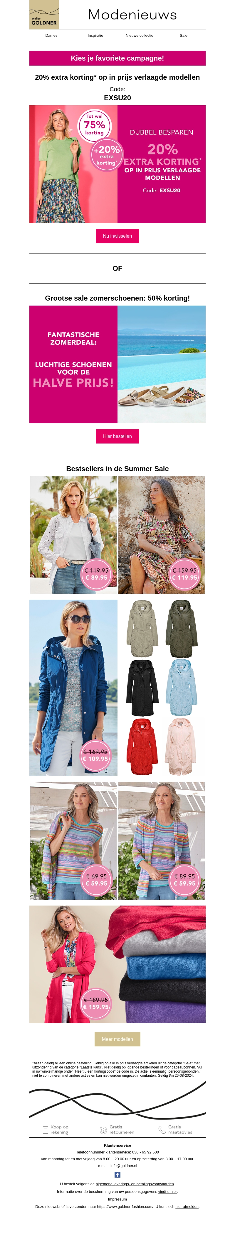 Mis deze kans niet om dubbel te besparen met tot wel 75% korting en een extra 20% korting op afgeprijsde modellen. Gebruik de code EXSU20. Vergeet niet de fantastische zomerdeal en de bestsellers in de Summer Sale met kortingen tot 50%.