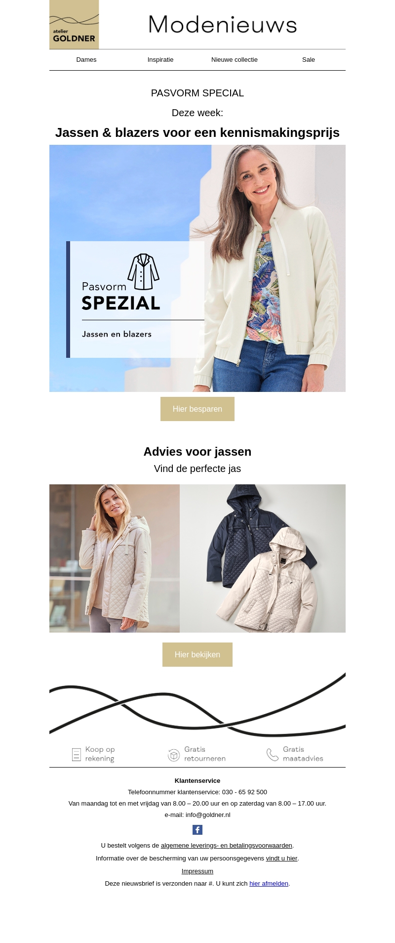 Ontdek deze week onze exclusieve collectie van jassen en blazers voor een speciale kennismakingsprijs. Bij Atelier Goldner bieden we advies en perfecte pasvorm voor elke gelegenheid. Ontvang gratis maatadvies en geniet van gratis retourneren. Mis deze kans niet om je garderobe uit te breiden met stijl en comfort.