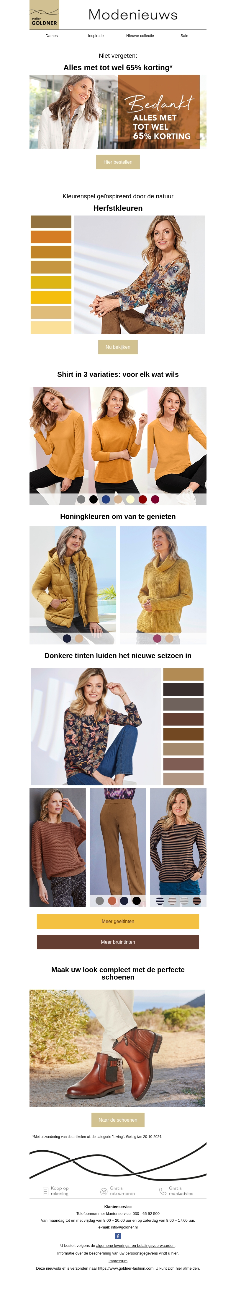 Ervaar de nieuwe herfstcollectie met kleuren geïnspireerd door de natuur. Ontdek shirts in verschillende stijlen en laat de honingkleuren je garderobe verlichten. Verwelkom het seizoen met donkere tinten en de perfecte schoenen om je look compleet te maken.