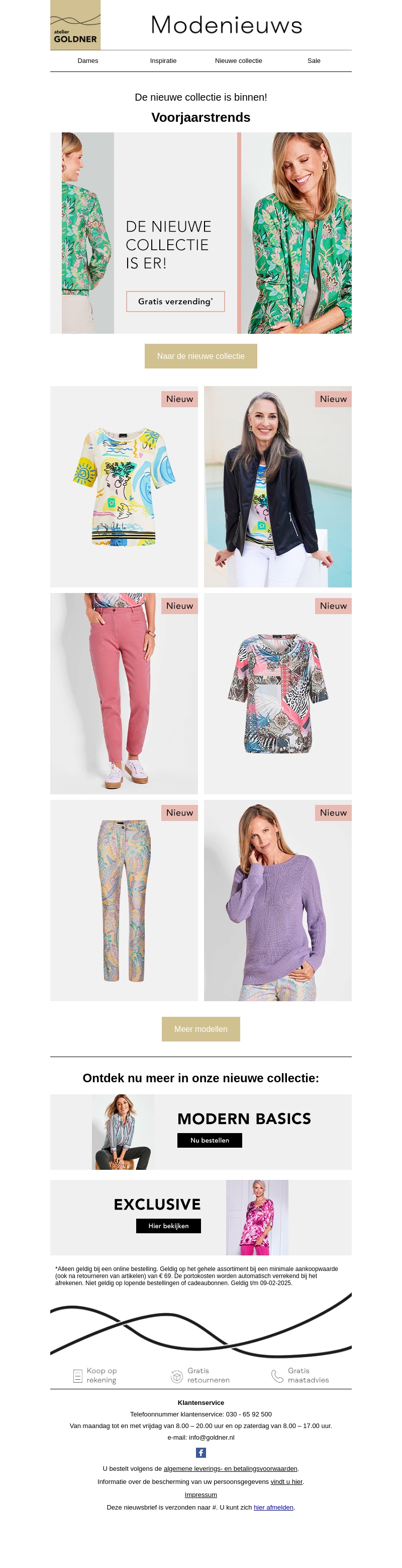 De nieuwste collectie van Atelier Goldner is binnen en biedt frisse voorjaarstrends die elke garderobe opfrissen. Ontdek een variatie aan kledingstukken, van kleurrijke tops tot stijlvolle jassen, allemaal ontworpen om jouw voorjaarsstijl te inspireren. Mis de mogelijkheid niet om je look bij te werken met moderne basics en exclusieve items. Profiteer van gratis verzending bij online bestellingen. Bezoek de website om de volledige collectie te bekijken en jezelf te trakteren op de nieuwste trends.