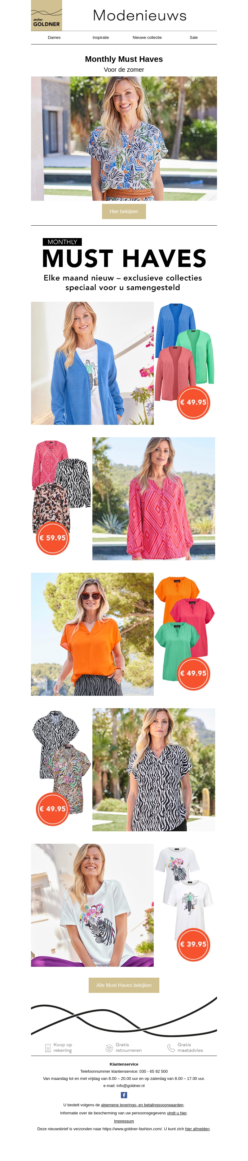 Elke maand nieuwe, exclusieve collecties speciaal voor u samengesteld. Ontdek de nieuwste trends en koop uw favoriete items voor een kennismakingsprijs. Inclusief kleurrijke kledingstukken voor de zomer die uw garderobe zal opfrissen.