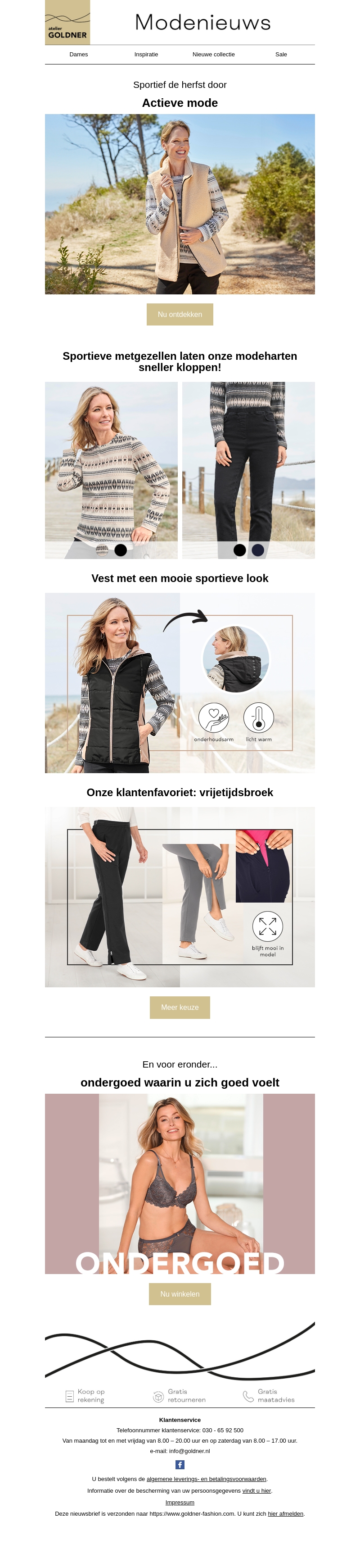 Bereid je voor op een sportieve herfst met onze nieuwste modecollectie. Van stijlvolle jassen tot comfortabele broeken, we hebben alles wat je nodig hebt om actief en modieus te blijven. Mis onze klantenfavorieten niet, ontworpen om je de hele dag door comfort en stijl te bieden. Duik in de modetrends en voel je goed met elk outfit, inclusief ons comfortabele ondergoed.
