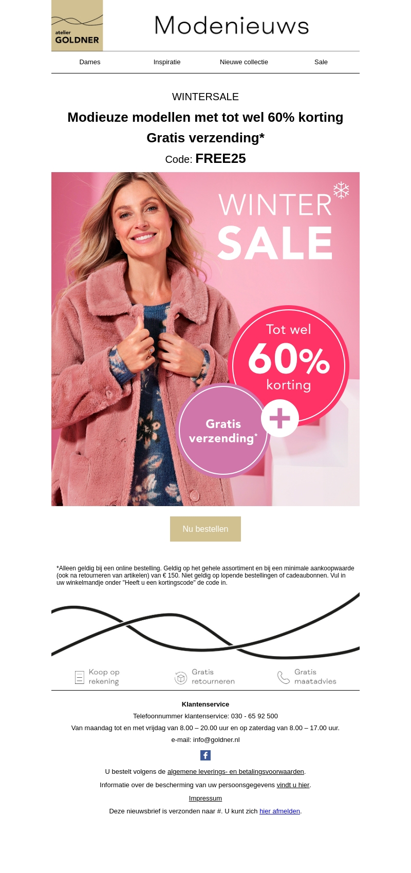 Ontdek de spectaculaire Winter Sale bij Atelier Goldner! Geniet van stijlvolle modellen met kortingen tot wel 60%. Vergeet niet gebruik te maken van de gratis verzending op uw aankopen. Het is de perfecte gelegenheid om uw garderobe bij te werken voor het koude seizoen. Shop vandaag nog en bespaar groot.
