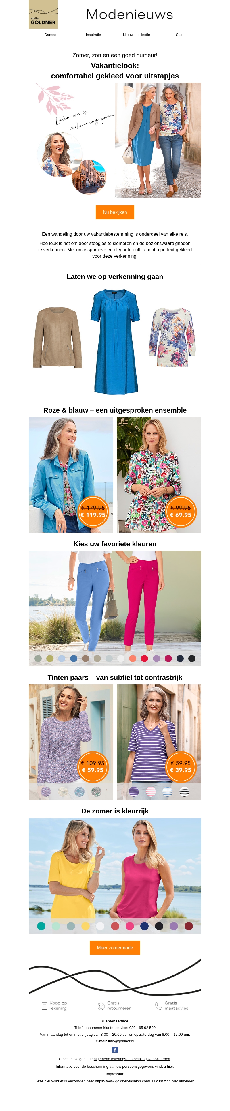 Blijf deze zomer trendy en comfortabel met de nieuwste collectie van Goldner. Van vakantielooks tot kleurrijke ensembles, ontdek de perfecte outfit voor elke gelegenheid. Kies uit diverse kleuren en stijlen die passen bij uw humeur en stijl.