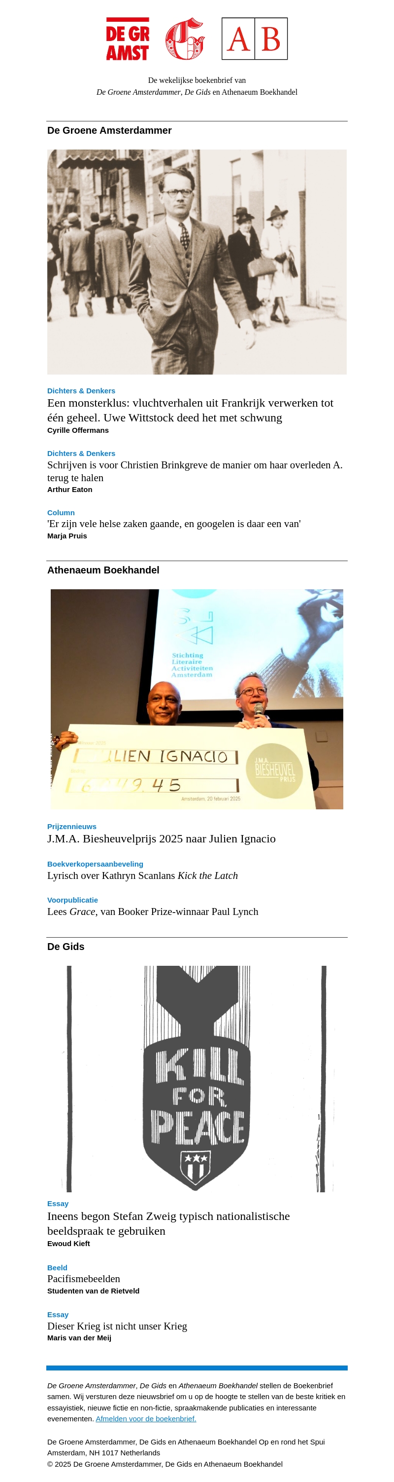 Deze editie van de Boekenbrief presenteert literaire werken van auteurs zoals Uwe Wittstock en Julien Ignacio. Ontdek inspirerende essays en boeiende verhalen die de geest prikkelen. Bekijk de aanbeveling van boekverkoper en geniet van exclusieve voorpublicaties. Duik in interviews en ontdekkingen van nieuwe schrijvers en trends in de literatuur. Lees interessante columns die verschillende perspectieven bieden. Stay tuned voor meer updates in elke Boekenbrief.