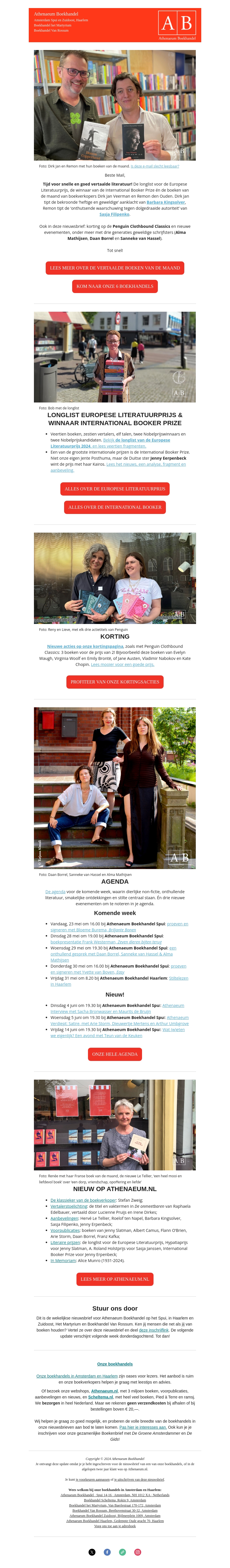 Athenaeum Boekhandel introduceert de nieuwste boeken van de maand, inclusief winnaars van de Europese Literatuurprijs en de International Booker Prize. Ontvang geweldige kortingen en blijf op de hoogte van onze aankomende evenementen. Bezoek onze boekhandels voor meer literatuur en inspiratie.
