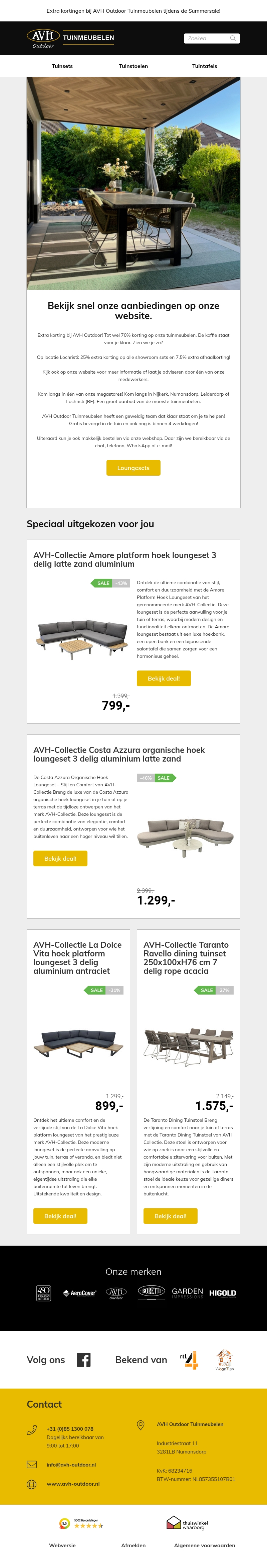 Extra korting nu bij AVH Outdoor Tuinmeubelen
