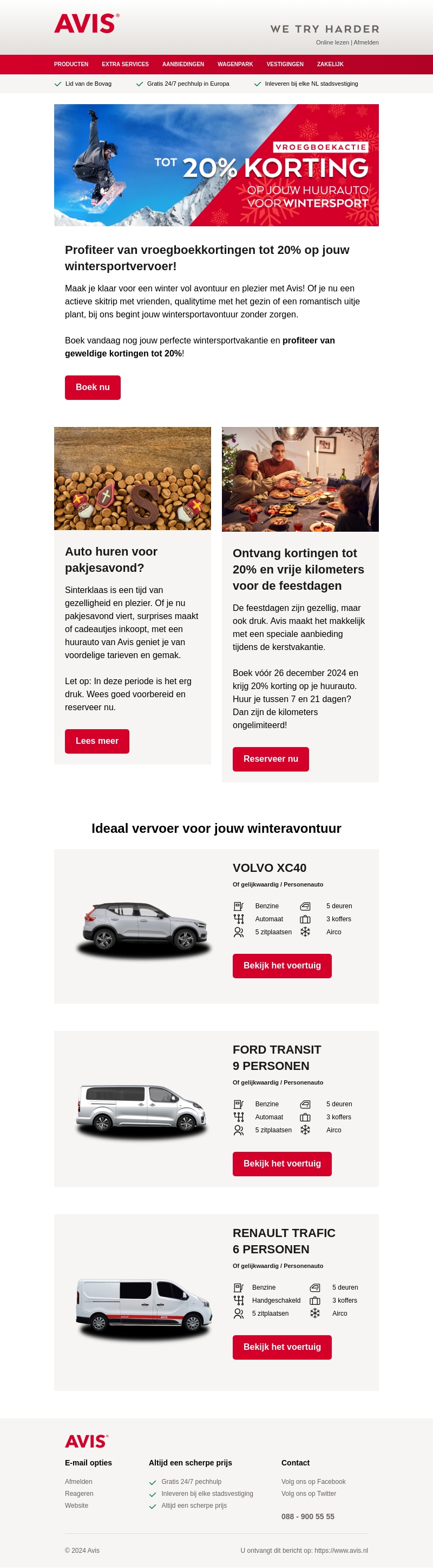 Bereid je voor op een winter vol avontuur met Avis. Ontvang tot 20% korting op autoverhuur voor je wintersportreis. Kies uit verschillende modellen, perfect voor avonturen in de sneeuw. Boek voor 26 december 2024 en bespaar op je vervoer. Bezoek onze website voor meer informatie en voorwaarden.
