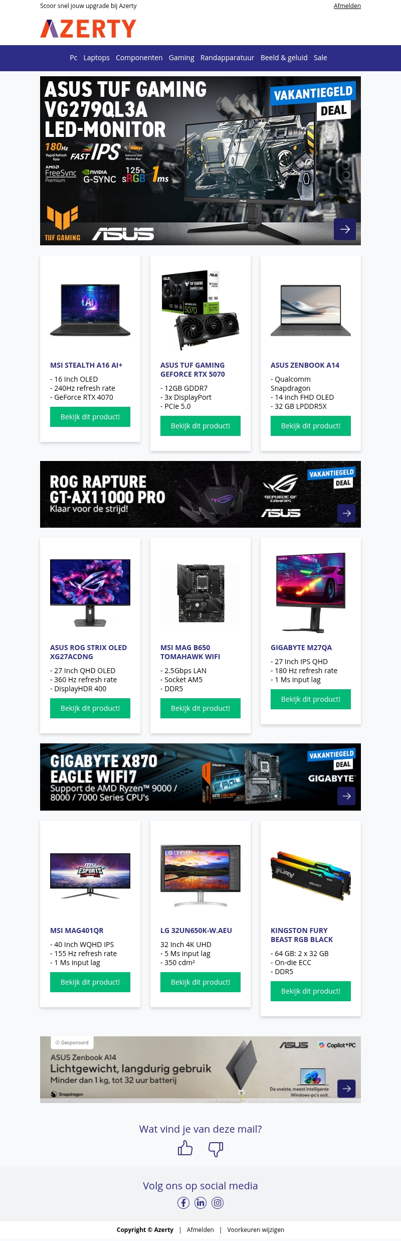 - ASUS ROG Strix OLED XG27ACDNG - OLED-beeldschermnu € 699 bij Azertykoop