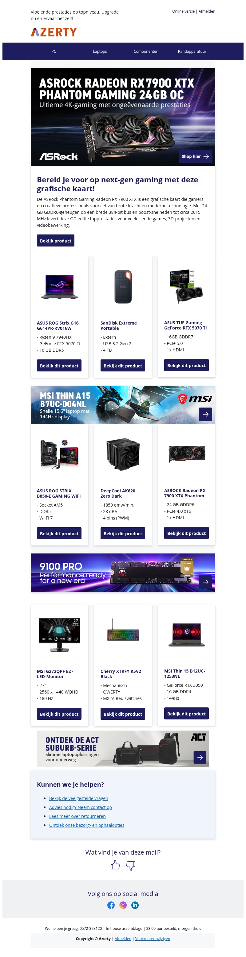 - ASROCK Radeon RX 7900 XTX Phantom Gaming 24GB OC - Videokaartnu € 799 bij Azertykoop