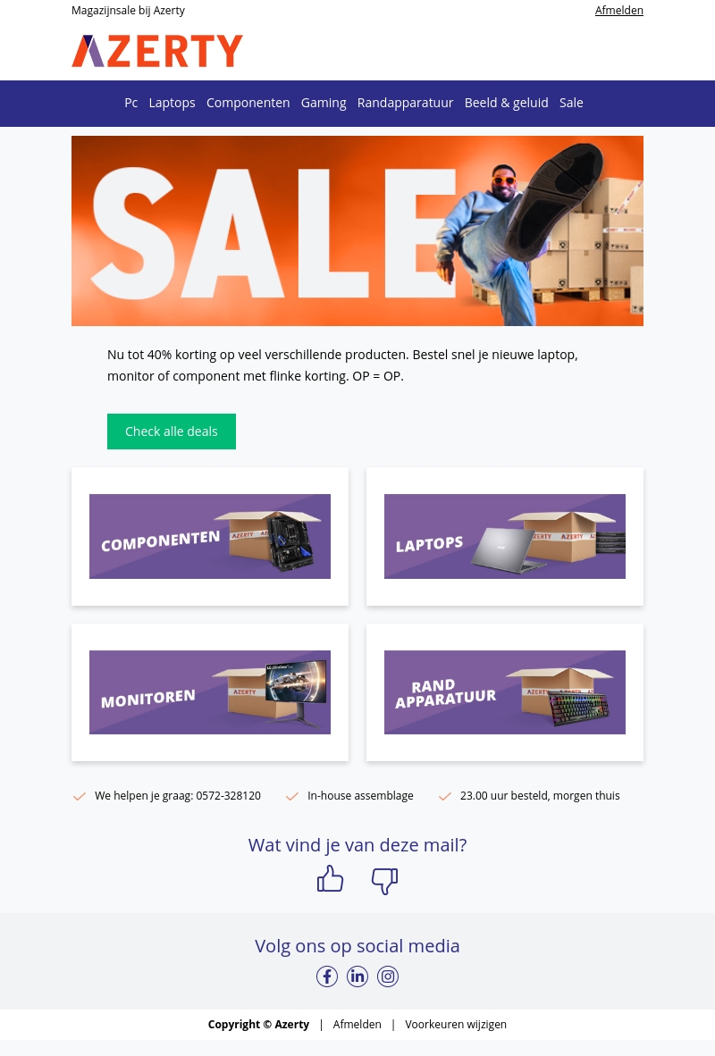 Ontdek de geweldige kortingen tijdens de magazijnsale bij Azerty! Geniet van kortingen tot 40% op een selectie van laptops, componenten, monitoren en randapparatuur. Wees er snel bij, want OP = OP. Shop nu voor de beste deals en upgrade je apparatuur.