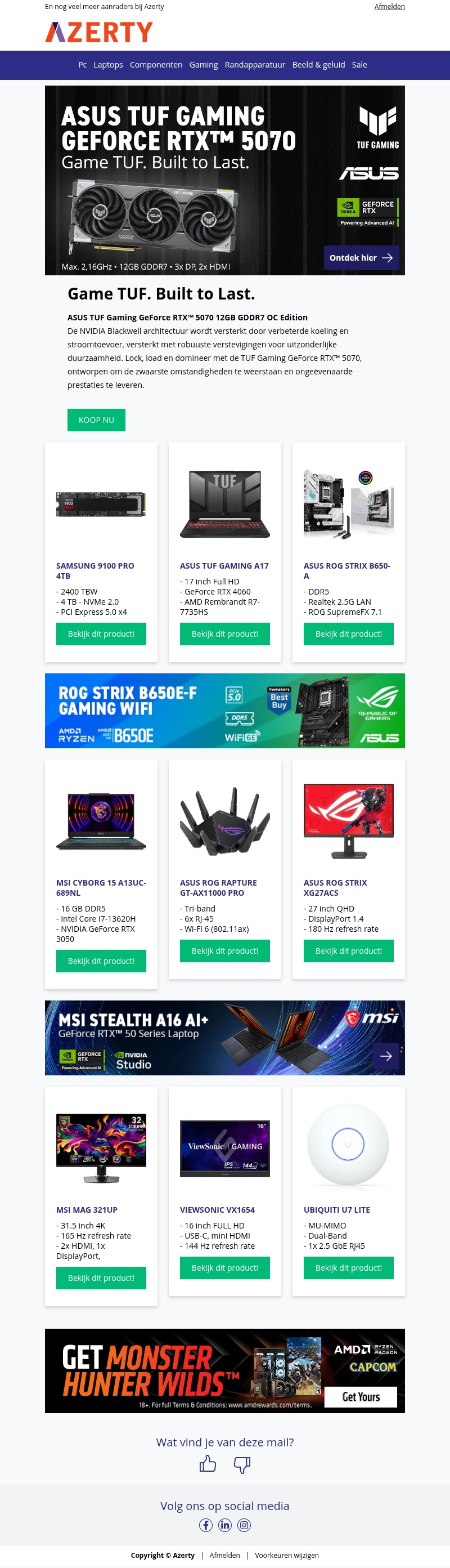 - ASUS TUF Gaming GeForce RTX 5070 12GB OC - Videokaartnu € 709 bij Azertykoop