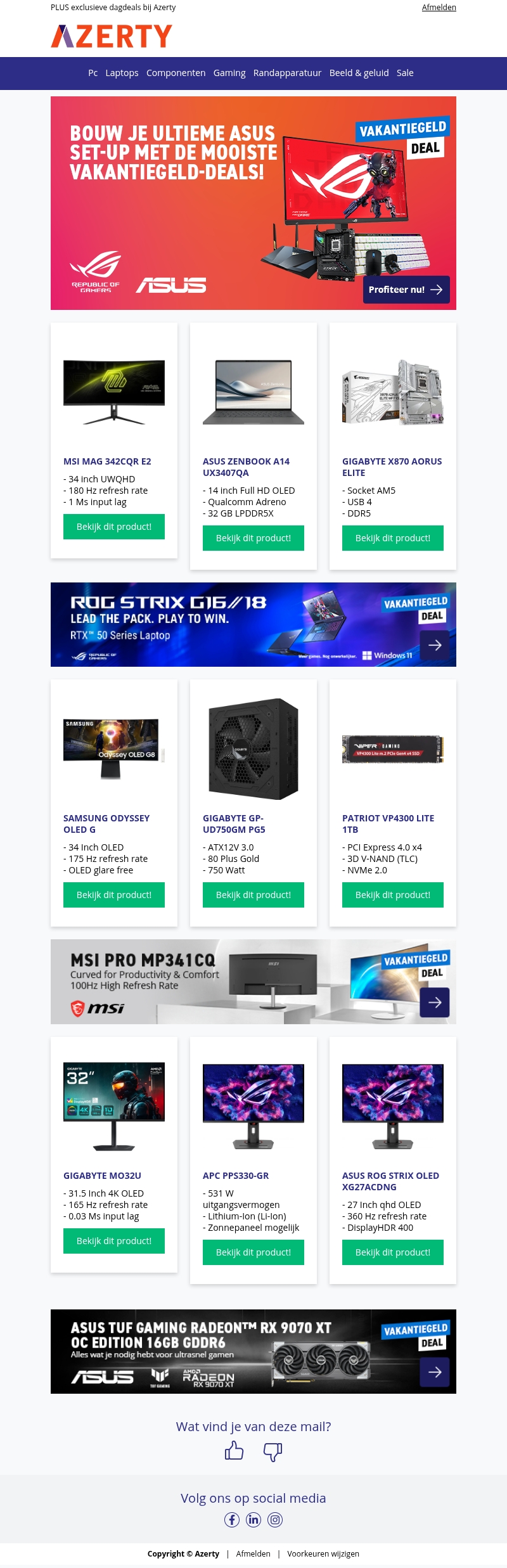 Vakantiegeld-deals op ASUS, Gigabyte, MSI en meer!