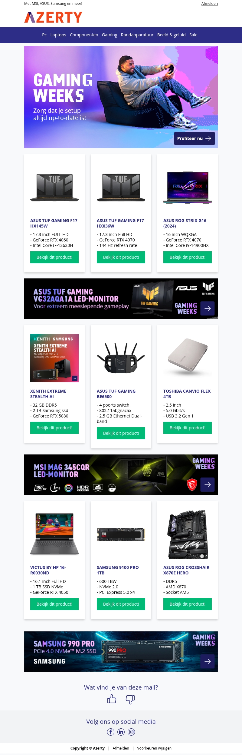 - ASUS ROG Strix G16 (2024) G614JIR-N4050W - Gaming laptopnu € 1779 bij Azertykoop